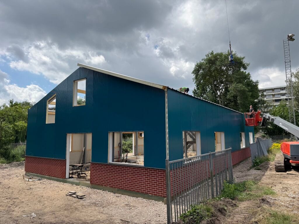 De afgelopen dagen is er keihard gewerkt om alle gevelpanelen en dakplaten te plaatsen. Hiermee krijgt het gebouw echt vorm en gaan we langzaam richting een wind en waterdicht gebouw. Wat gaaf om te zien hé? Als dit afgerond is wordt de betonvloer gestort!