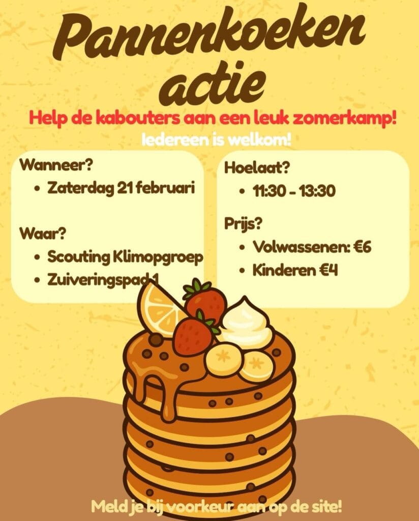 Vandaag is het zover de jaarlijkse pannenkoeken actie van de kabouters vind plaats!!🥞😋 Aanmelden is nog mogelijk via: https://www.klimopgroep.nl/activiteiten/kabouters-pannenkoekenrestaurant/ (Vergeet niet dat de parkeerplaats bij scouting afgesloten is.)