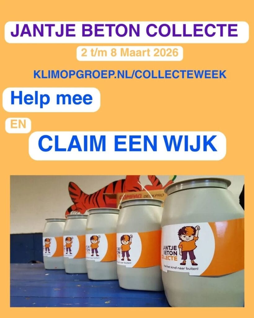 Help mee met de collecte voor Jantje Beton! Ga naar www.Klimopgroep.nl/collecteweek en adopteer je (eigen) wijk. Loop samen met andere ouders en/of Klimoppers op je eigen tempo en je eigen moment. Zo collecteren we in zo veel mogelijk wijken. Meer informatie op de website of in de laatste KlimUpdate.