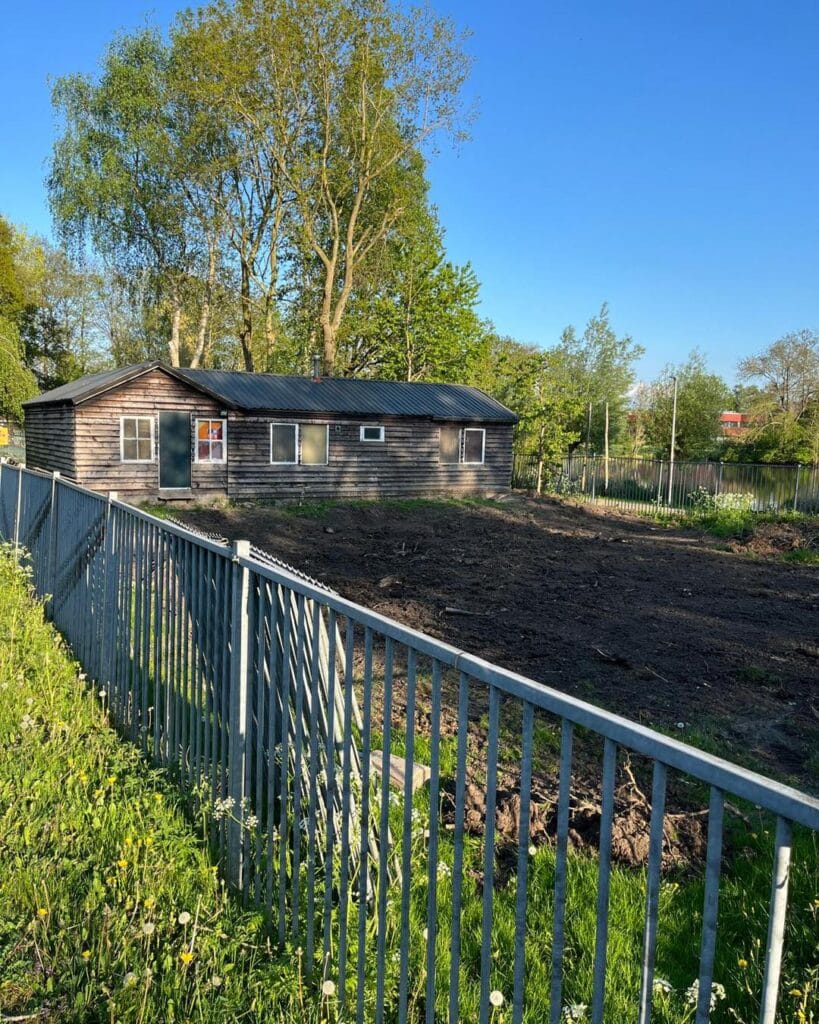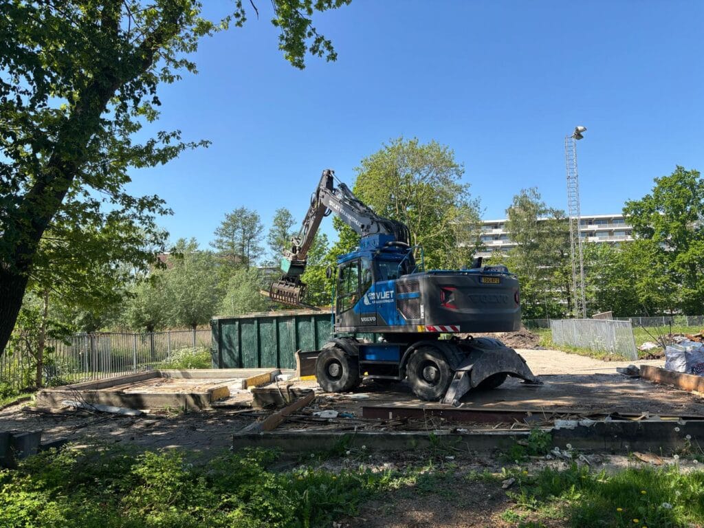 Er was niet veel nodig om het oude gebouw te slopen. In delen is het gebouw uit elkaar gehaald en netjes gesorteerd en afgevoerd. De betonplaat wordt verwijderd en de grond wordt weer hersteld.