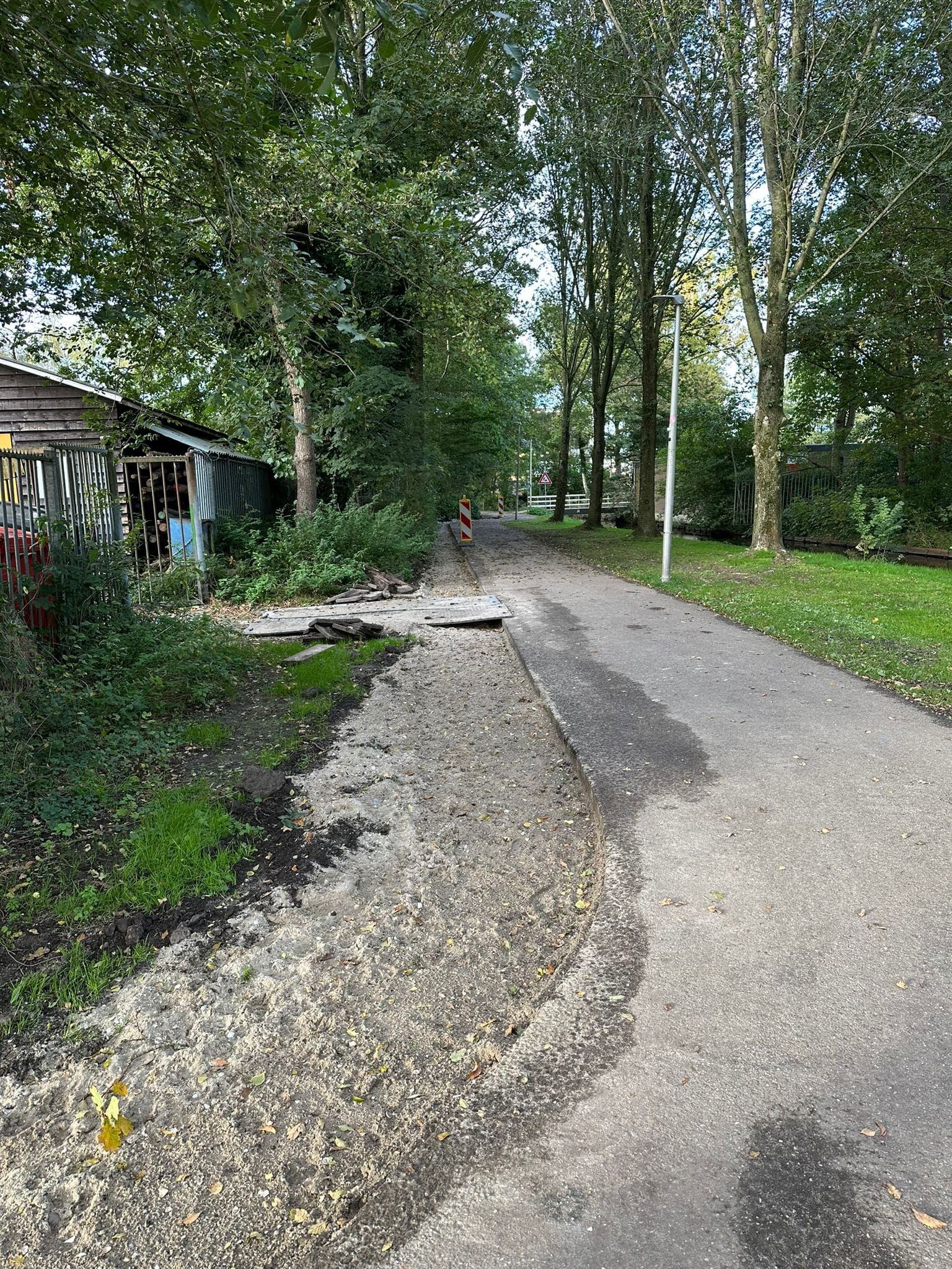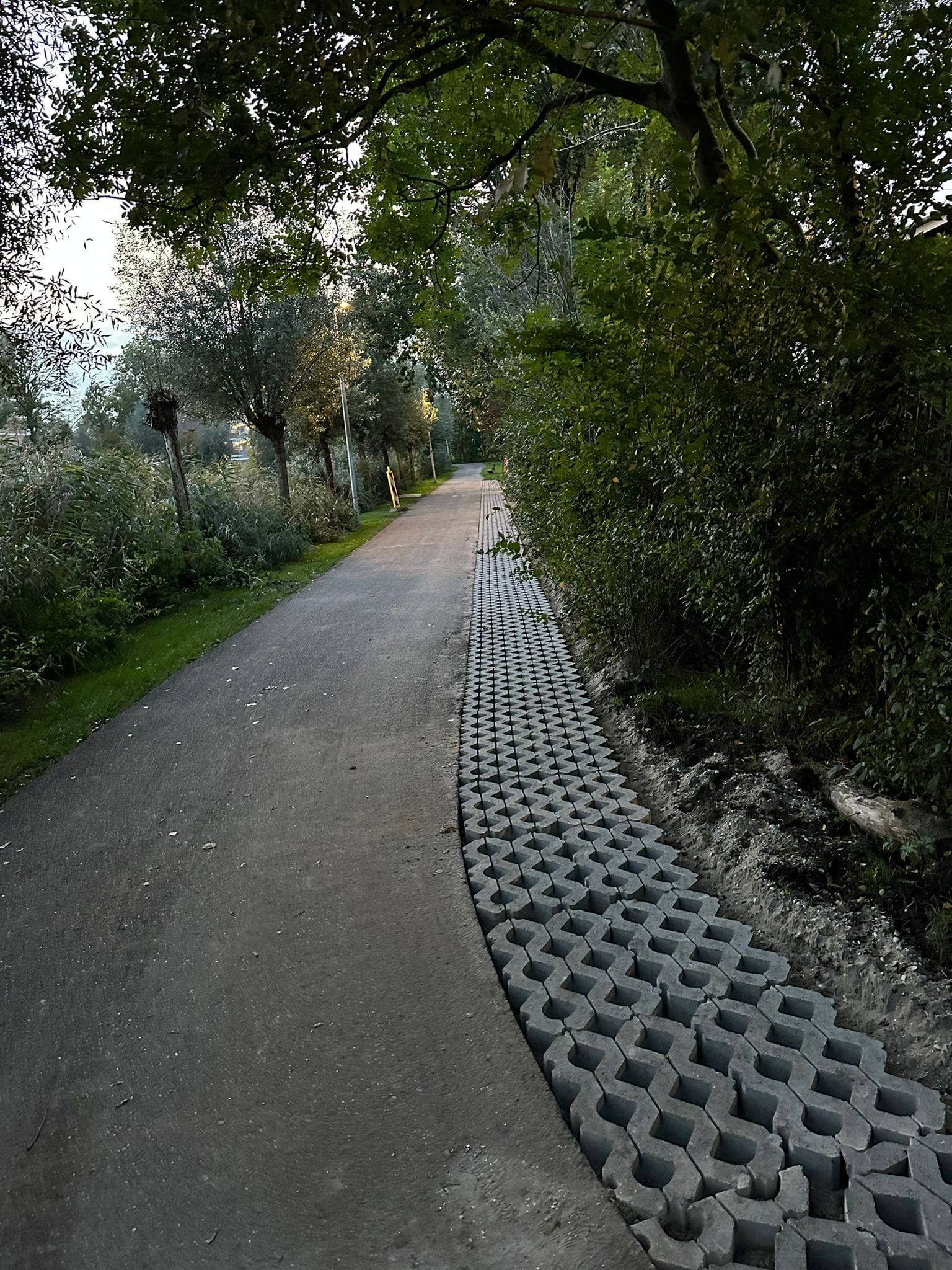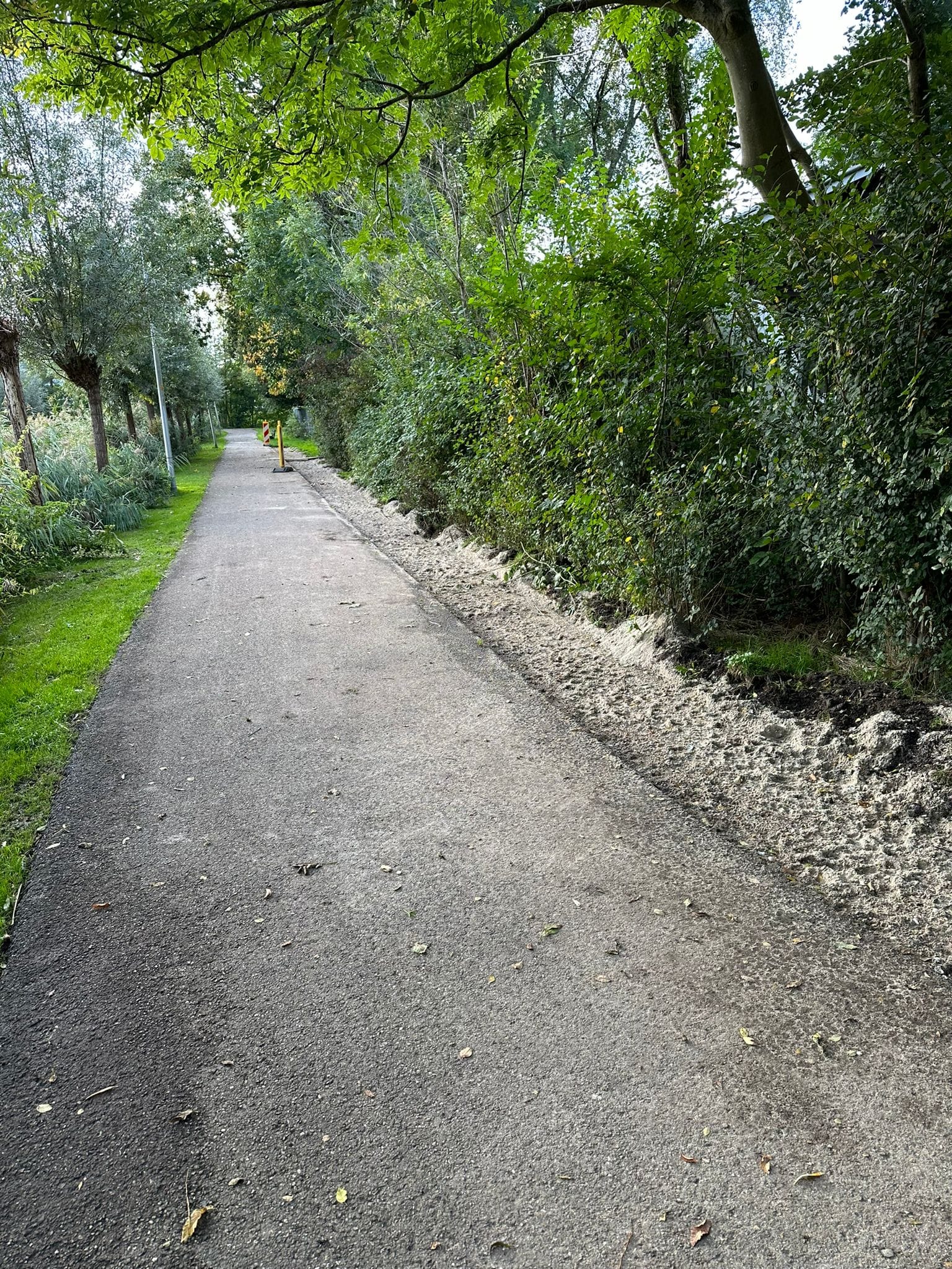 In verband met onze nieuwbouwplannen, heeft de Gemeente Waddinxveen het fietspad rondom ons terrein verbreed. Dit omdat eventuele hulpdiensten de zijkant van het terrein goed moeten kunnen bereiken.